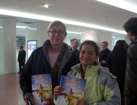 与赖莫斯一同前来观看晚会的葡萄牙大使夫人一边做着打鼓的动作,一边说,她很喜欢鼓的节目。她在中国曾看过京剧的表演,但从来没有看到过像神韵这样的演出,“太好了,非常美!”
