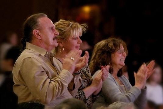 ![]() 演员在观众的热烈掌声中三次谢幕。 |