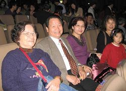 ![]() 老人养护中心创办人唐满生夫妇和曾老太太(左一)赞赏神韵的演出 |