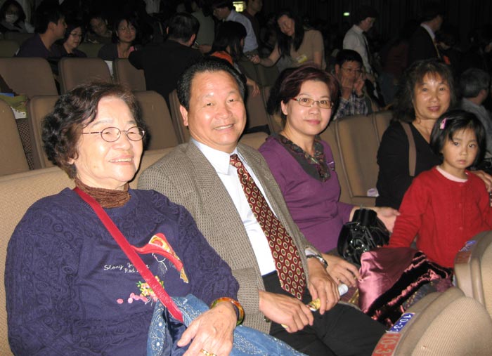 隔座的曾老太太应侄女邀请前来,和远从屏东来的亲戚一起来观赏演出。曾老太太经常到世界各地旅游,也看过很多表演,一开口即盛赞天幕背景很美,是印象最深刻的,演员年轻又漂亮。比较不久前在纽约看过的其它表演,她表示神韵更好。曾老太太询问神韵演出的其它场次,表示回去就打电话叫女儿也来看。