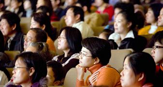 【明慧网二零零八年三月十日】(明慧记者荷雨台中采访报导)二零零八年三月八日,神韵纽约艺术团圆满结束在高雄的演出后移师台中,将神韵热潮延烧至台中文化城,将在中兴大学惠荪堂连演五场。首日的两场演出已是座无虚席,高朋满座,教育界的精英们更是相约而来一睹神韵风采,中兴大学的校、院长们称,可以在神韵晚会剧场里开大学例会了。