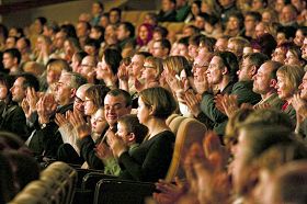 神韵纽约艺术团三月九日起在台中的五场演出,售票率接近百分之百,中兴大学超大容量四千个座位的蕙荪堂,迄十日的第三场演出场场满座,引起了台中艺文界啧啧称奇,观众在中场休息时赞叹声连连。