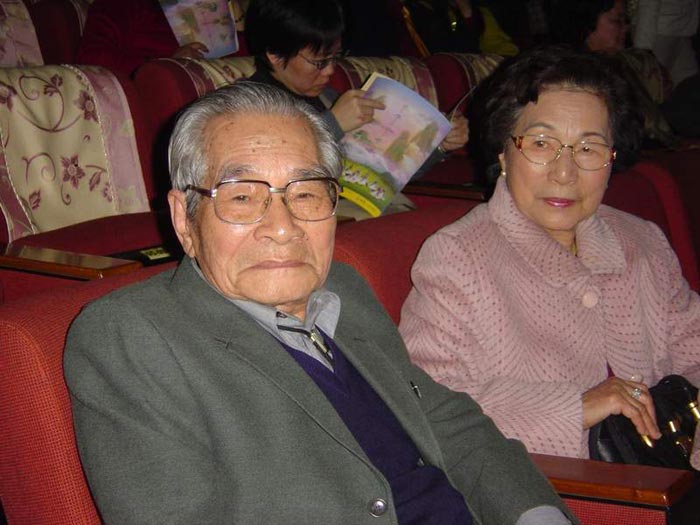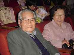 台湾漆艺泰斗王清霜(左)与夫人观赏神韵晚会的演出