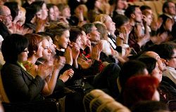 神韵巡回艺术团于三月十一日下午在布拉格国际会议中心大厅进行第二场演出,演出结束时,观众长时间鼓掌,大幕因此两度拉开,演员两次向热情的观众谢幕,大幕再次合上时,大部份观众都仍旧站在原地热烈的鼓掌,望着舞台依依不舍,一点都没有离开的意思,当大幕第三次拉开,身着绚丽多姿演出服的演员们再次出现在观众面前时,观众席上传出了欢呼声和更热烈的掌声。