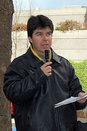 旧金山法轮功学员彭先生表示,今天大法弟子到中领馆来,主要是中共邪党借奥运,抓了很多法轮功学员。中共没有资格举办奥运会,因为它是独裁政权,迫害人权。在中国大陆,根本就没有信仰自由。奥运的精神是人权、自由。所以中共没有资格举办奥运。
