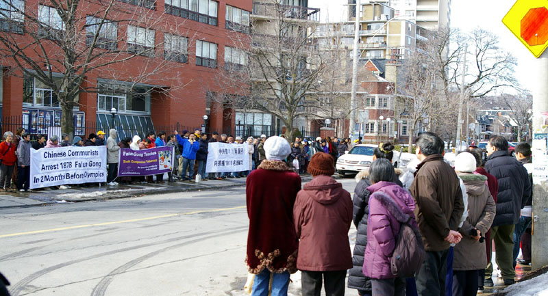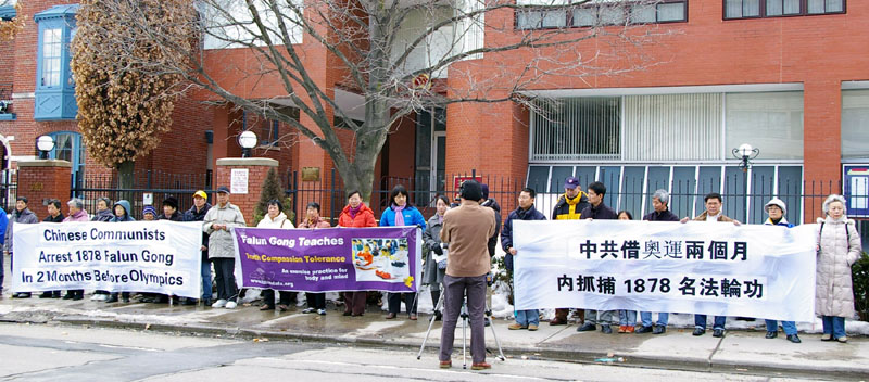 ![]() 法轮功学员多伦多中领馆前抗议中共借奥运加剧迫害 |