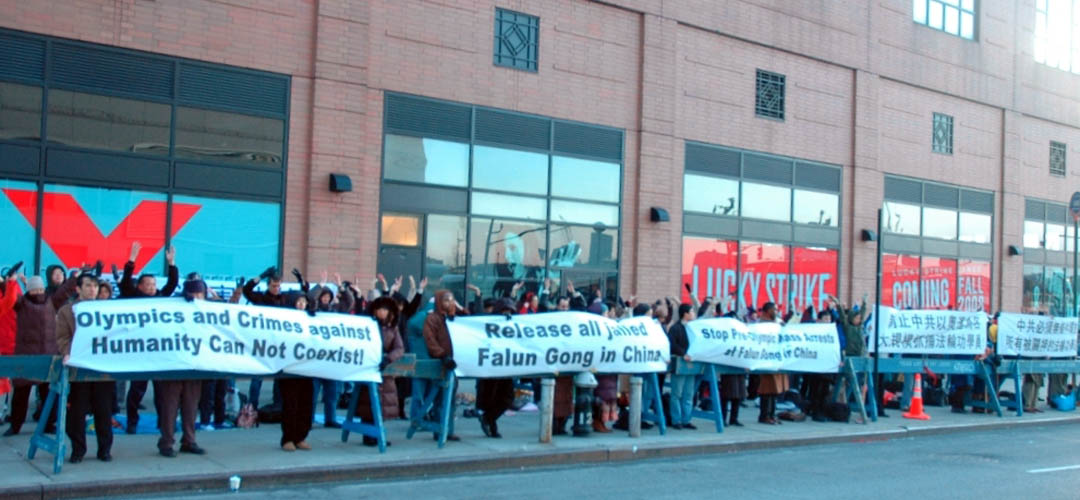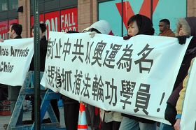 ![]() 法轮功学员纽约中领馆前集会,抗议中共以奥运为借口加剧迫害 |