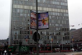 ![]() 在斯德哥尔摩市中心处处可见“神韵晚会”宣传广告牌。 |