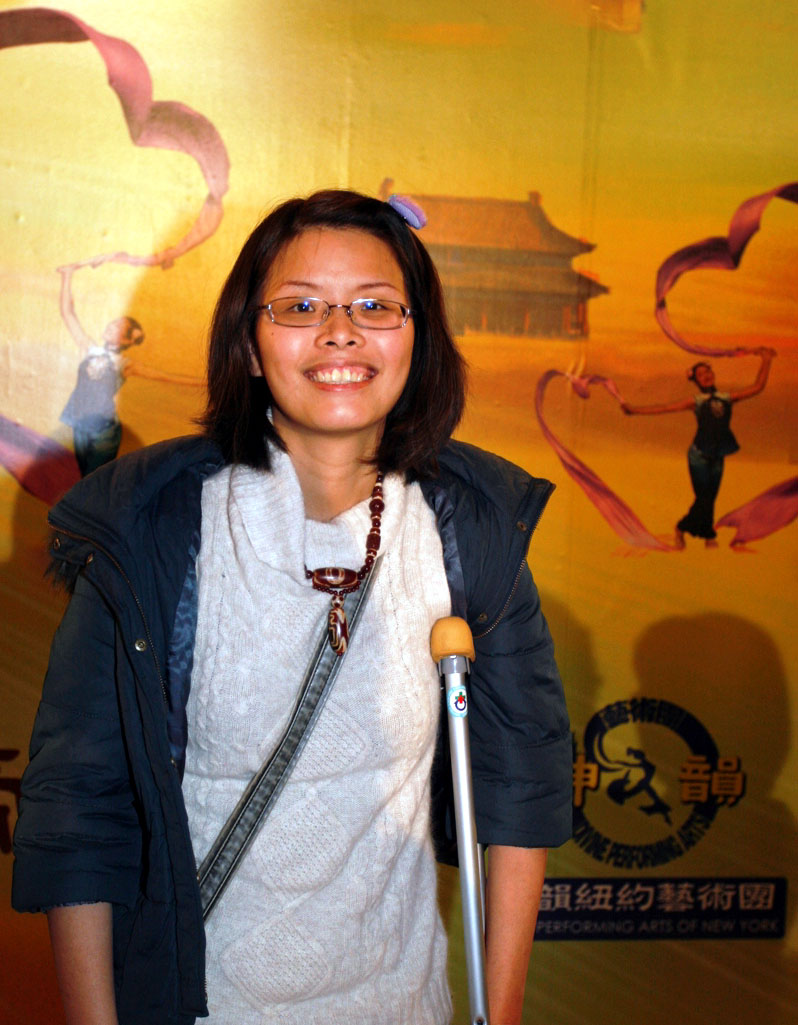 ![]() 许女士开心的表示:观赏神韵后,因车祸的腿伤疼痛不见了。 |