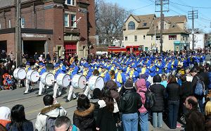 【明慧网二零零八年三月二十四日】三月二十一日至二十四日是西方的传统节日——复活节,二零零八年三月二十三日加拿大多伦多的复活节大游行,把节日的气氛推向了高潮。今年的游行有超过八十支队伍参加,主题是迎接新生。法轮功天国乐团第一次应邀参加游行,受到主办者及观众的赞扬。