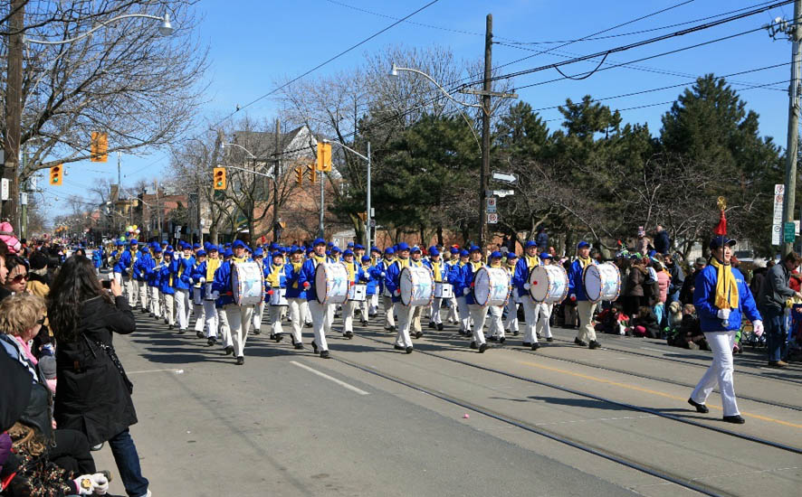 法轮功天国乐团第一次应邀参加多伦多复活节游行,受到观众的欢迎
