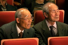九十四岁高龄的都月仁老婆婆在观看过程中一直合十并激动的鼓掌,她信心十足的说,“我看了神韵保证能活过一百岁!”