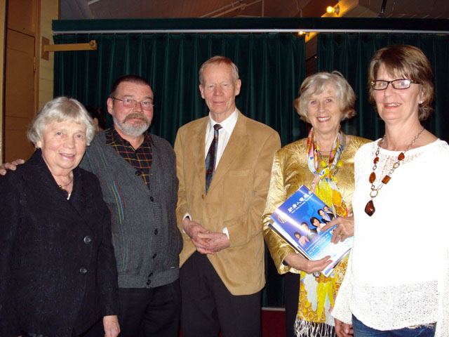 画家图拉•易塔哈德女士(右二)和家人及朋友从挪威来观看神韵演出