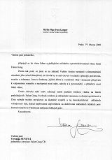 【明慧网二零零八年三月二十六日】捷克共和国内务部长于二零零八年三月十九日致信捷克法轮大法协会,声援在中国被迫害的法轮功学员,谴责中共对法轮功的暴行。部长并表示,“真、善、忍”的传播和信仰对于国家和民族之间的尊重和合作产生深远积极意义。