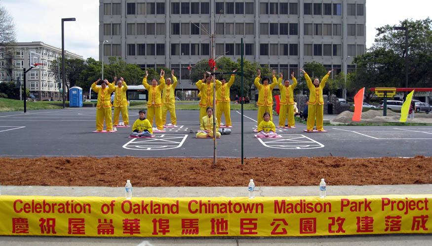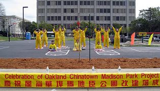 【明慧网二零零八年三月三十一日】二零零八年三月二十九日,位于美国加州奥克兰(Oakland,也称屋仑市)唐人埠的马地臣花园(Matheson)举行改建落成仪式。奥克兰市市议员姜丽娴(Pat Kernighan)及众多在马地臣花园活动的华人团体参加了仪式。由于从一九九七年马地臣花园就成为当地法轮功学员的炼功点,并且这次改建项目法轮功团体也积极协助,当地的法轮功学员应邀参加了仪式,并上台演示了五套祥和舒缓的功法。