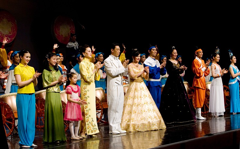 三月三日瑞士日内瓦的首场演出结束,神韵艺术团演员谢幕。