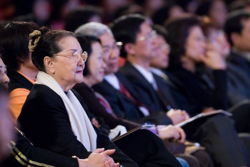 观赏晚会时,李彩娥仅坐着半个椅子,身体微微前倾,并随节目旋律轻微律动,满脸的陶醉,一派天真自然的赤子之情;演出结束时,她率先起身鼓掌,带动全场观众起立向神韵热烈的鼓掌致意。