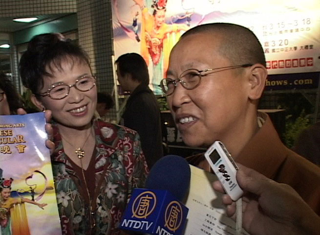 带领着寺里的出家众和信众一行十二人,浩浩荡荡来观赏三月五日高雄场神韵晚会演出的寺院住持法光,谈到为什么会来看晚会的缘由,他说:“是寺院的信众跟我介绍这台晚会的。”他觉的没有来到这里不了解,一定要来这里一探究竟,他说:“我觉的好东西没有和大家分享不好,所以就带了我的信众都来。”他表示,这样启迪心灵引发正念的演出,如果只有他一个人来看太可惜了。