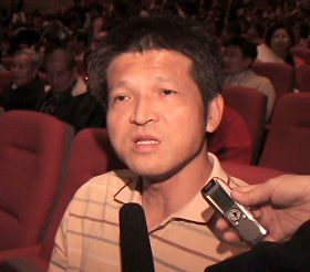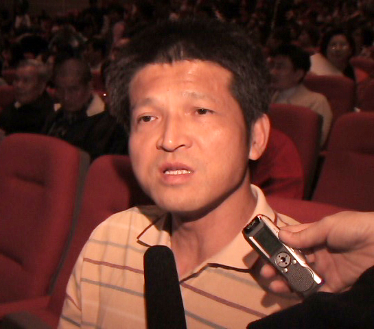 ![]() 高雄市天韵舞蹈团团长杨智强接受采访说:“晚会很精致,将多媒体天幕跟舞蹈结合很好”。 |