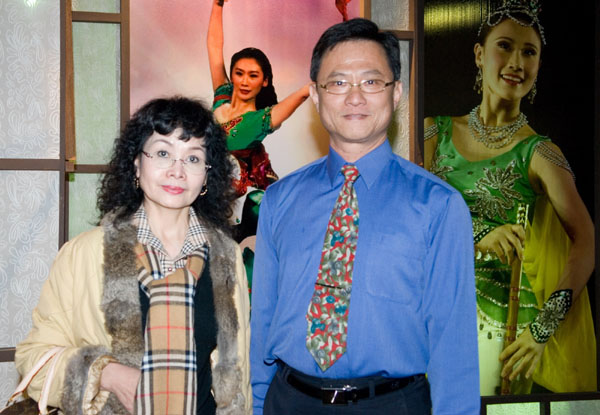 蔡淑媛今天不只自己来观赏神韵,也邀请家人、乐团行政总监一起来观看神韵晚会。
