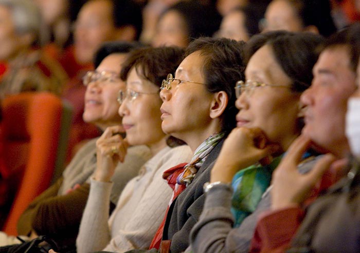 小港高中教务主任陈良杰夫人去年因先生买了两张票,陪同先生观看小港社教馆的“二零零七年神韵”演出,当时心中甚觉喜欢,所以今年一听说神韵再度来台巡演,她便提醒丈夫要买票观赏。今年她邀约友人,满怀期待再次进场体验“神韵”之美。