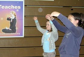 下午二时,学员们在博览会外的大厅举办了三十分钟的讲座。在十分钟的功法演示和讲解后,学员们结合自身修炼体会回答了观众问题并介绍了发生在中国的迫害。当得知参加功法演示的一位看起来象是中年的学员已年过花甲时,观众们不由的鼓掌惊叹法轮功的神奇。