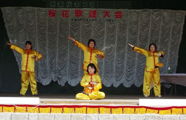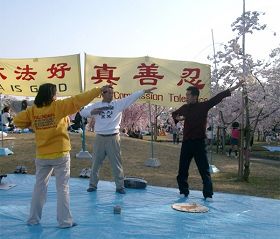 【明慧网二零零八年四月十日】二零零八年四月五日、六日周末这两天,日本中部地区的法轮功学员参加了爱知县丰田市(Toyota-City, Aichi Prov.)水源(SUIGEN)樱花节,在舞台上进行了功法演示,向游人们展示了法轮大法的美好。这是法轮功学员连续第四年参加这一活动。