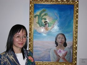 艺术家陈肖平表示记录历史是艺术家的责任,也是她的创作源泉。她站在自己的一幅表现法轮功学员在纽约曼哈顿讲真相的新作品前对记者说:“在二零零四年我刚刚到纽约的时候,大概在夏天的时候,我就看到法轮功学员在纽约的曼哈顿,他们申请了许可在街上摆反酷刑展,坚持了有一年多的时间,每天都在那里,不管刮风下雪啊,我就想用一幅画作来见证这个历史的瞬间。”