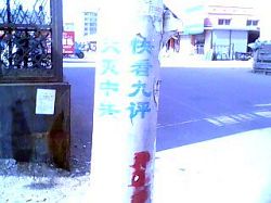 图片报道:西藏的退党标语、写有退党信息的纸币