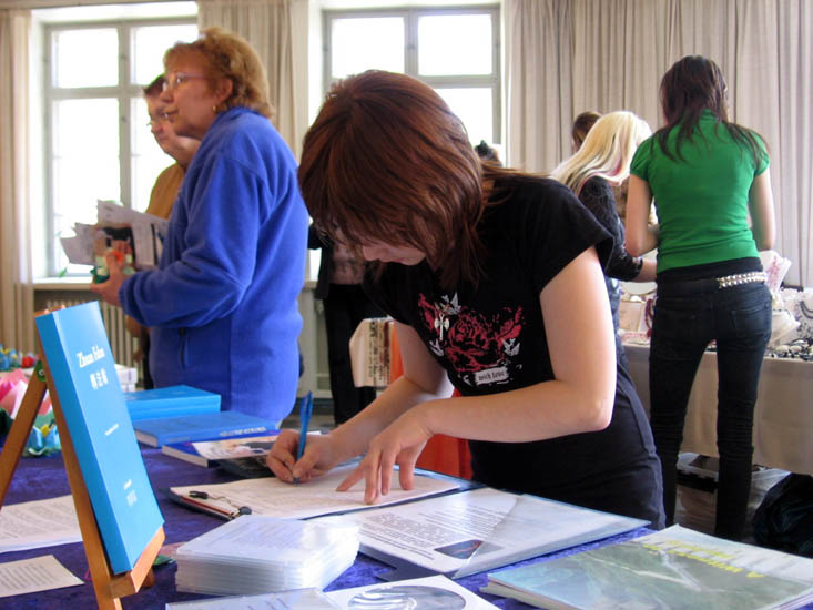 这些真实而又悲伤的故事令很多人在展位上驻足,用心聆听,了解正在中国发生的对法轮功长达九年的残酷迫害。人们纷纷签名反迫害。