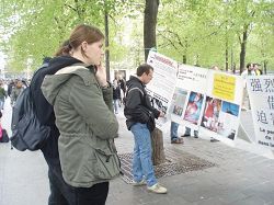 活动吸引了大量的行人,许多当地民众认真观看图板,阅读真相资料,纷纷签名声援反迫害。有一群法国年轻人了解到中共对法轮功学员的残酷迫害后非常愤慨,主动要求帮助法轮功学员向行人们分发真相传单。