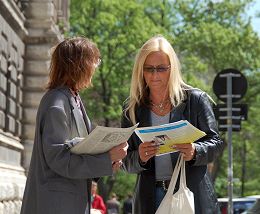 ![]() 奥地利维也纳市政厅门外,法轮功学员以展板、真相资料、功法演示等方式传播真相 |