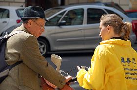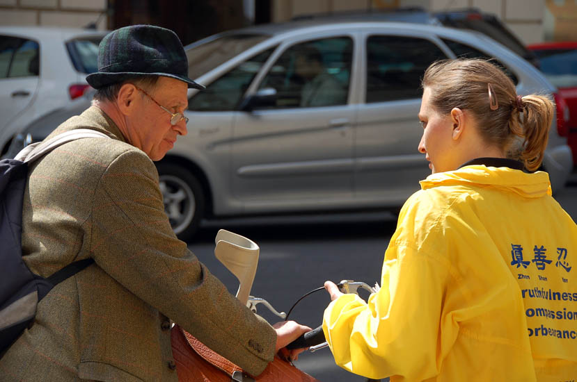 ![]() 人们认真倾听法轮功学员讲述发生在中国的迫害真相 |
