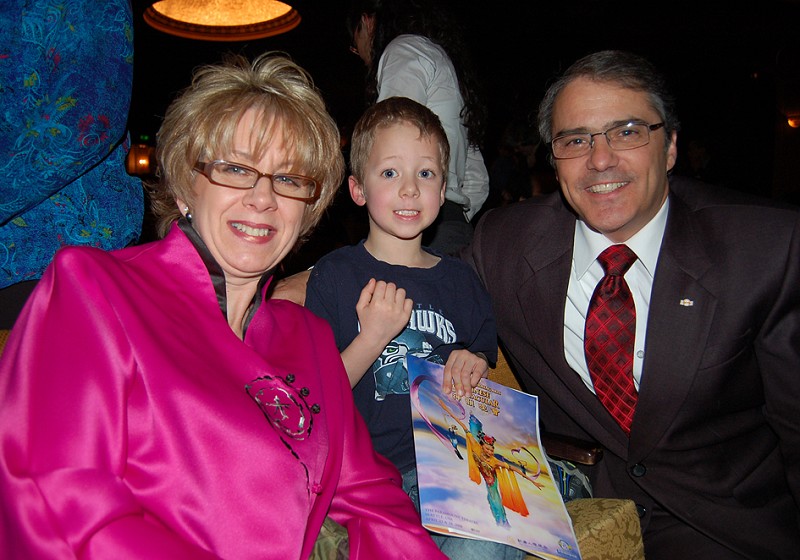 华盛顿州副州长布雷德•欧文和太太琳达带小孙子Luke一起欣赏纽约神韵艺术团四月二十四日在西雅图的第二场演出