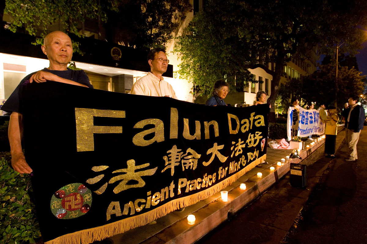 洛杉矶法轮功学员烛光守夜纪念「四二五」(图)