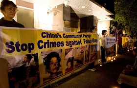 【明慧网二零零八年四月二十六日】美国洛杉矶当地时间四月二十五日晚七点半至九点半,法轮功学员以及学员的家属、朋友和支持者在中共驻洛杉矶领馆前举行了烛光守夜,纪念「四二五」,抗议中共对法轮功的迫害,同时悼念过去九年里被迫害致死的法轮功学员。