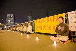 二零零八年四月二十五日晚八点,德国柏林亚诺维兹桥上燃起了点点烛光,一些中国人和德国人在烛光后打坐。