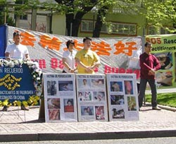 ![]() 西班牙法轮功学员在中使馆前纪念四·二五,抗议中共迫害 |