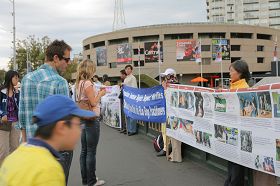 ![]() 傍晚时分,法轮功学员在市中心城市广场举行烛光守夜活动 |