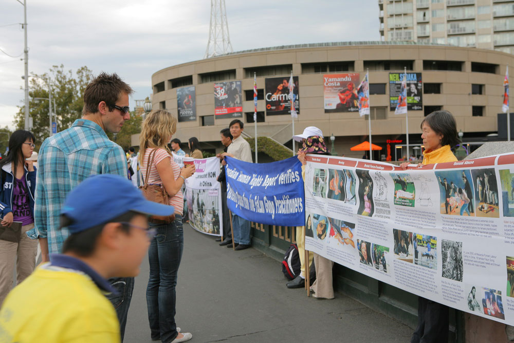 Dianne Padalini是个土生土长的澳洲人,每天也有打坐的习惯,她说,驾车时偶然路过王子桥,这时心中一个声音告诉她,要她停下车过来看一看,她就在桥上散步,于是看到了法轮功学员的“勇气长城”。她说,“我听到这些打坐的人,善良的人,信仰真善忍的人被从街上抓走折磨,感到很震惊,更令我震惊的是,居然有人取走他们的器官拿去卖。”“我个人相信,全世界必须觉醒,我们必须祈祷,用正的思想的力量改变中国政府的做法。”