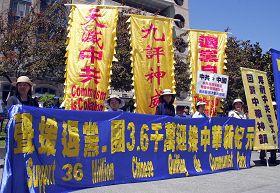 【明慧网二零零八年四月二十七日】(明慧记者王英旧金山报导)随着中国民众的觉醒,现在已经有近三千六百万中国人退出了中共的党团队组织。四月二十六日中午,旧金山各界人士来到中国城花园角广场,庆祝这个喜庆的日子,准备迎接即将到来的没有共产党的新纪元。