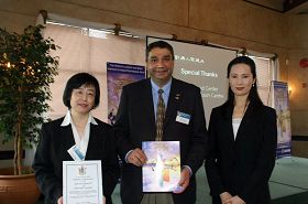 夏逸还特别向主办单位温哥华法轮大法协会和新唐人电视台,分别颁发了褒奖,赞赏他们在推广多元文化方面所作出的努力。