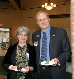 ![]() 省议员夏逸(Dave Hayer,中)颁奖给晚会主办方。 |