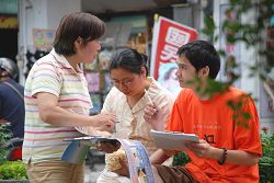二零零八年四月二十七日下午,在台湾新竹市最热闹的东门圆环,法轮功学员展开“全球反迫害百万联署征签”活动,向人们讲述中共对法轮功修炼者的残酷迫害,并呼吁人们伸出援手,共同制止迫害。