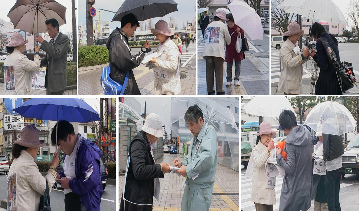 ![]() 民众雨中签名反对中共迫害法轮功 |