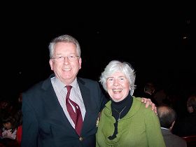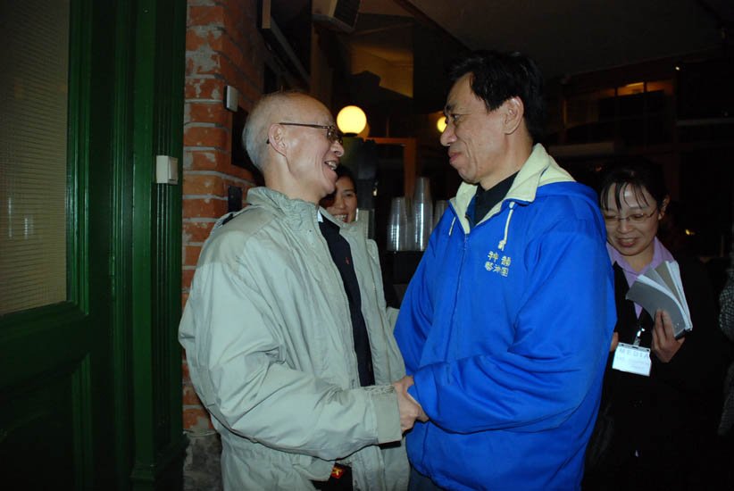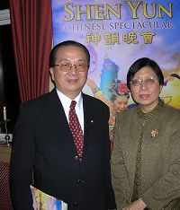 陈世忠先生(左)和神韵艺术团歌唱家关贵敏先生(右)亲切交谈
