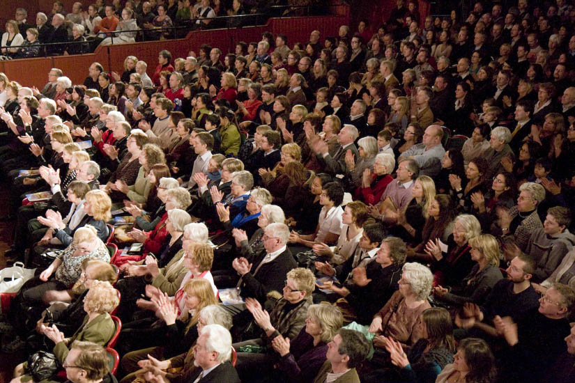 【明慧网二零零八年四月五日】(明慧记者荷雨综合报道)当地时间二零零八年四月三日晚十时三十分,神韵巡回艺术团在瑞典首都斯德哥尔摩Cirkus大剧院圆满完成了在北欧的最后的加演场,原本含蓄、腼腆的瑞典人激动不已,全场观众起立鼓掌、挥手致意,演员们九度鞠躬答谢,大幕在经久不息的如雷掌声中三次缓缓落下又升起,观众仍不舍得离去,直到全场灯光亮起,这持续十多分钟的心灵交流才渐告停息。
