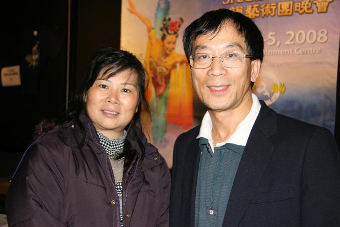 ![]() 澳大利亚中文美术学校教师卢炳夫妇一同观赏神韵晚会。卢炳认为神韵采用现代高科技制作的天幕简洁、高雅,与节目内容配合完美 |
