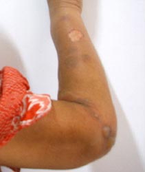 寿光市后张村大法学员桑春莲于2007年9月24日晚被寿光市恶警绑架,当晚被非法关押到寿光市公安局后,受到两个恶人残忍的流氓手段的迫害。其中一个穿警服的,年龄四、五十岁,逼迫桑春莲坐在地上,狠狠地往后拧她的双手;又用手抠着她的下颌使劲的向上掀。拧她的耳朵、双手左右开弓狠狠地打她的脸;还用穿皮鞋的脚往地上用力跺她的双腿、双脚。另一个穿便衣的更是用极其下流的手段对她施暴。此人30多岁,圆脸,大眼,留平头,用非常恶毒的话骂人、骂大法。他毫无人性的用打火机烧她的双臂和手,烧起了一个又一个的大燎泡。一个打火机用完了,就又换了一个新的打火机,把火苗调到最大,专烧手指和肘关节等最怕疼的地方,直烧得血肉模糊、惨不忍睹。恶人一边烧一边说:“我今晚非得扒你一层皮不可!”随后又流氓性大发作,把她的上衣撕了下来,又把她的裤子脱了下来,疯狂的叫着:“你们都出去,我要烧她的下身……”