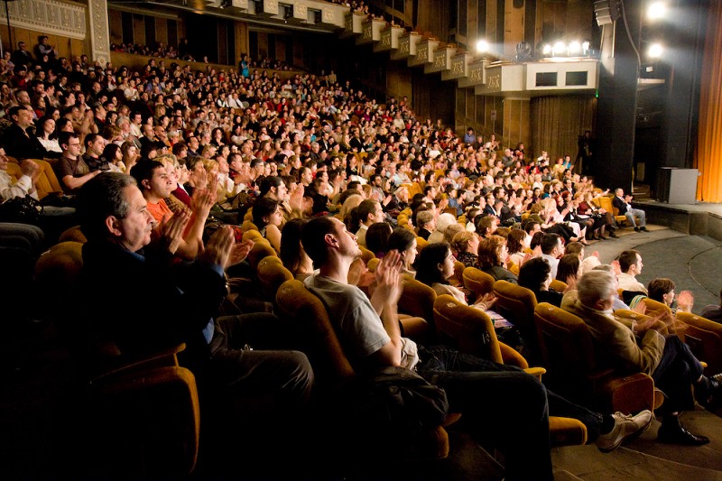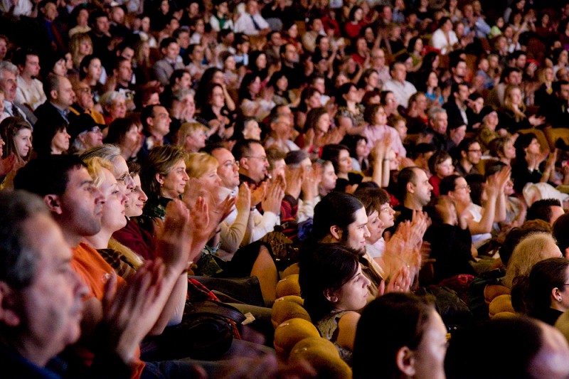 这只是神韵巡回艺术团在罗马尼亚布加勒斯特第二场演出的许多高潮的片段,其实,在《迎春花开》的舞剧演出时,当观众看到演员转动手绢的时候,都情不自禁的鼓掌,落幕时的掌声一直延续到两位主持人出现才逐渐淡去。